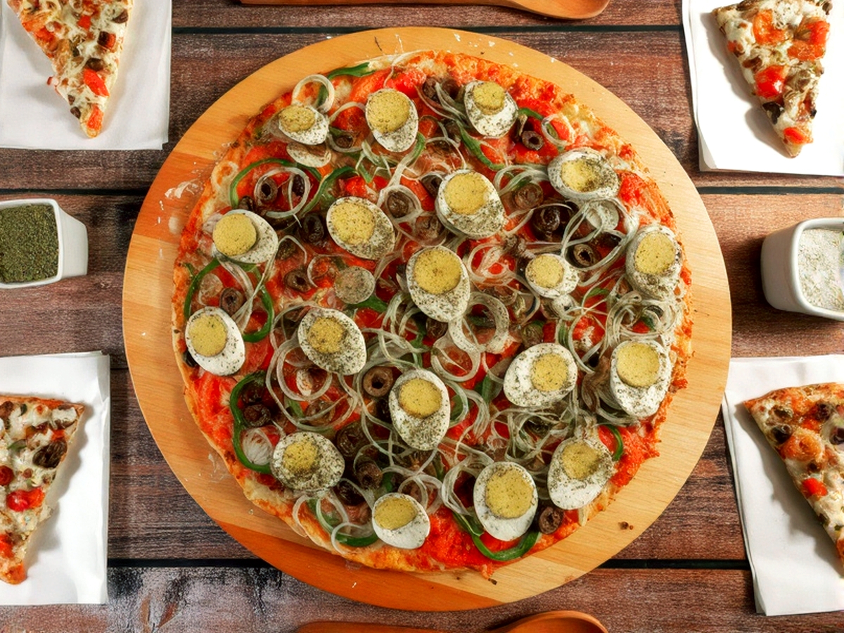 Um prato generosamente recheado, que é amplamente elogiado e falado por todos na Ilha. Esta pizza colossal promete não só satisfazer o seu paladar, mas também deixá-lo encantado com a sua abundância de ingredientes frescos e deliciosos. Experimente e deixe-se surpreender por cada mordida irresistível deste esplêndido prato!