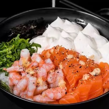 Uma combinação irresistível de salmão fresco e camarões suculentos, acompanhados do toque cremoso do cream cheese, arroz soltinho, vegetais frescos e molhos especiais. Cada garfada oferece equilíbrio entre sabor, frescor e textura, proporcionando uma experiência gourmet completa. Ideal para quem busca uma refeição leve, nutritiva e deliciosa, feita para encantar o paladar a cada mordida!