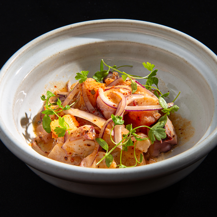 Nosso saboroso ceviche com cubos de salmão, peixe branco, atum, hadock, polvo, togarashi, cebola roxa, pimenta biquinho, azeite e um molho citríco do chef preparado com peixes e frutos do mar frescos, marinados em suco de limão e temperos especiais, resultando em um prato leve, cítrico e cheio de sabor. Cada mordida traz o equilíbrio perfeito entre acidez, textura e frescor do mar.