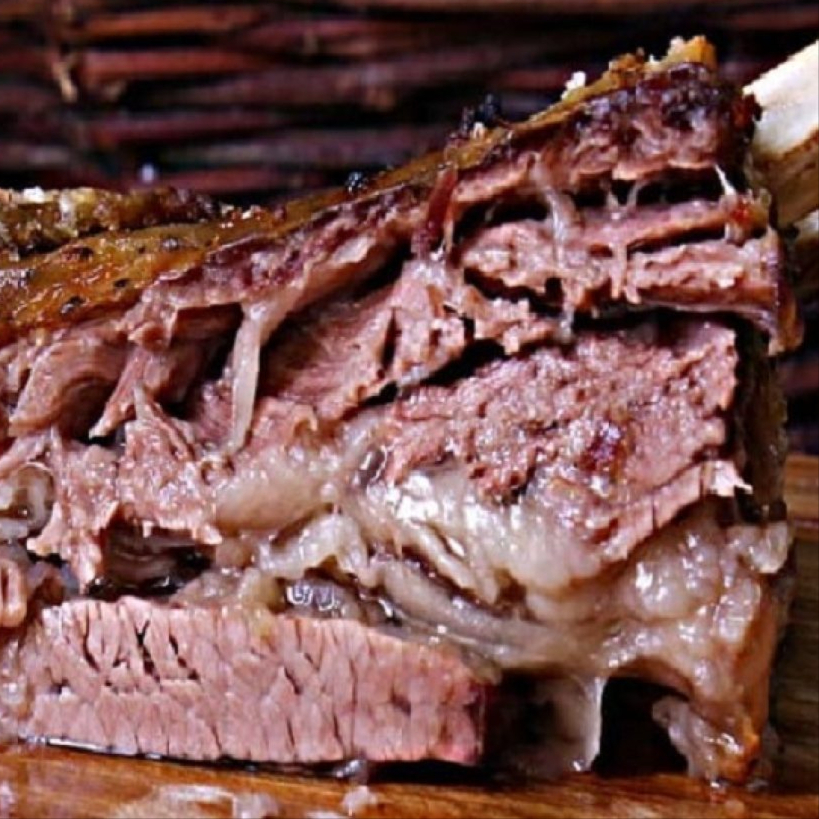 600 gr de uma deliciosa costela de boi no bafo recheada cim queijo coalho + vinagrete e farofa gratis