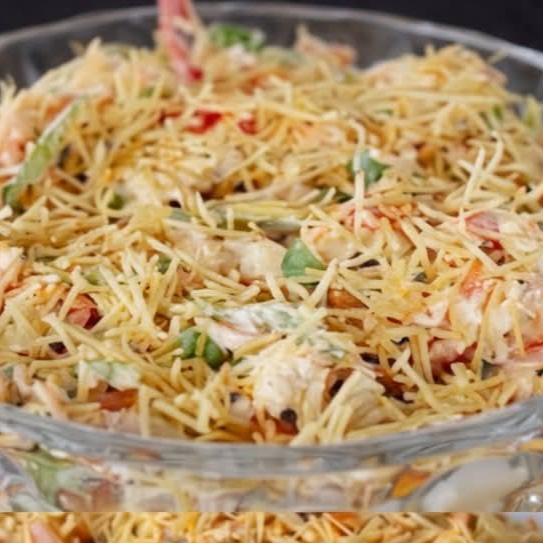 550 gr de um delicioso salpicao feito com (frango desfiado , cenoura ralada , milho , ervilha , maionese e batata palha)
