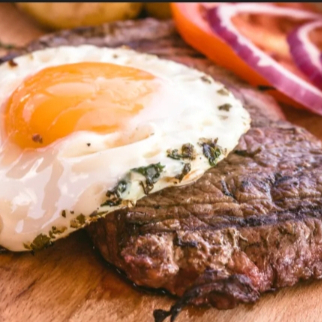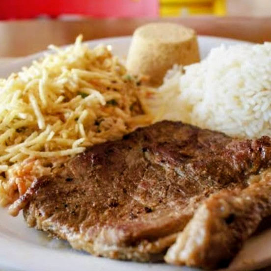 1 embalagem n8G com feijão preto saboroso, arroz branco soltinho, salpicao ,farofa da casa e um delicioso corte bovino com 1 ovo frito ao ponto.