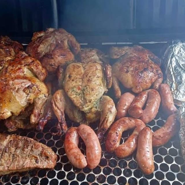 1kg de Churrasco assado em brasas composto por (picanha suina , linguiça de frango e toscana ,sobrecoxa na brasa , meio da alcatra bovina , filé bovino ao alho , e pao ao alho bem recheado) vinagrete e farofa gratis
