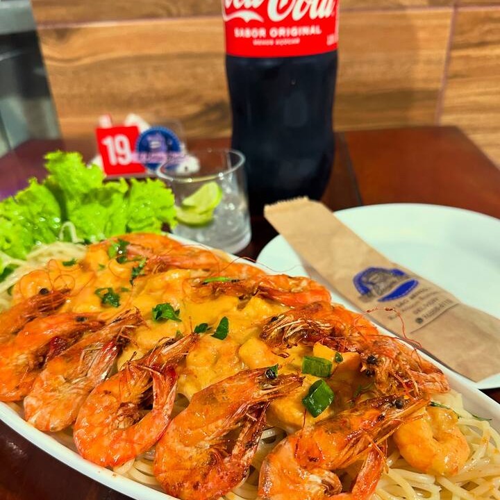 Macarrão al dente no molho cheio de camarão!!