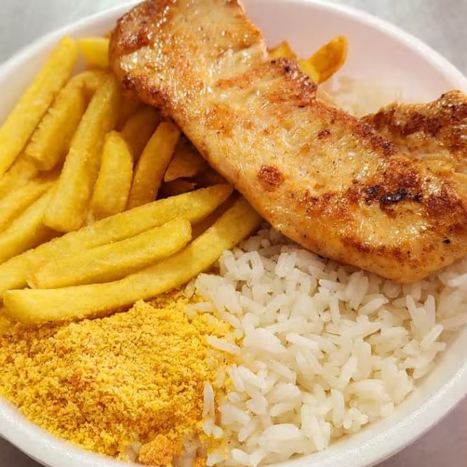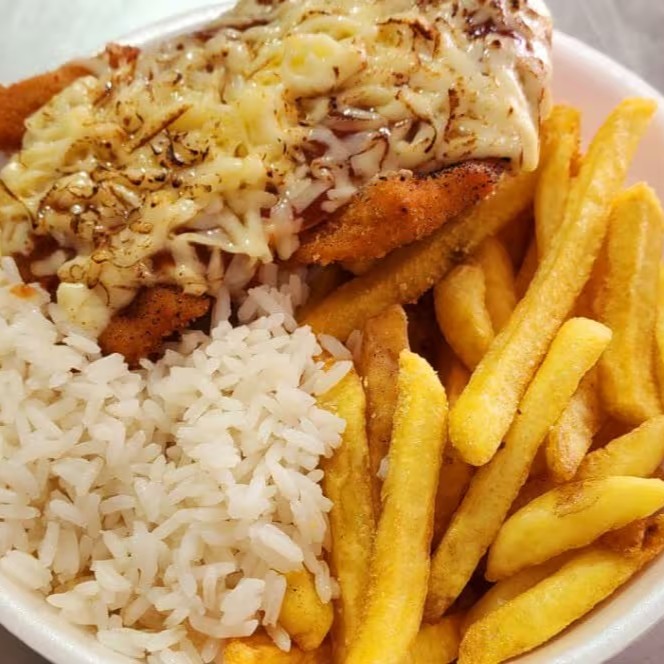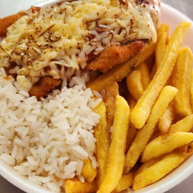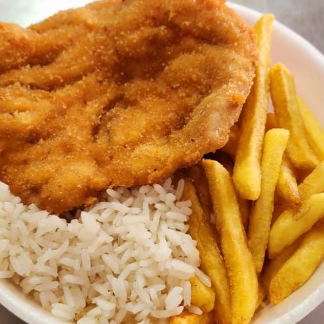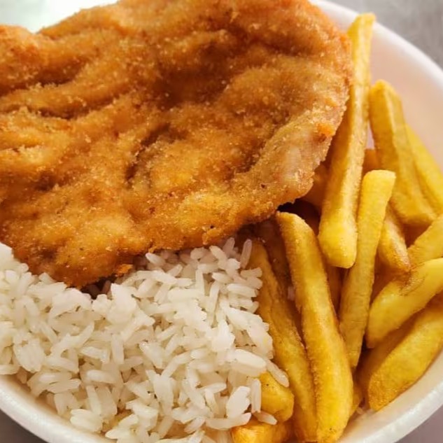Acompanha arroz e fritas!