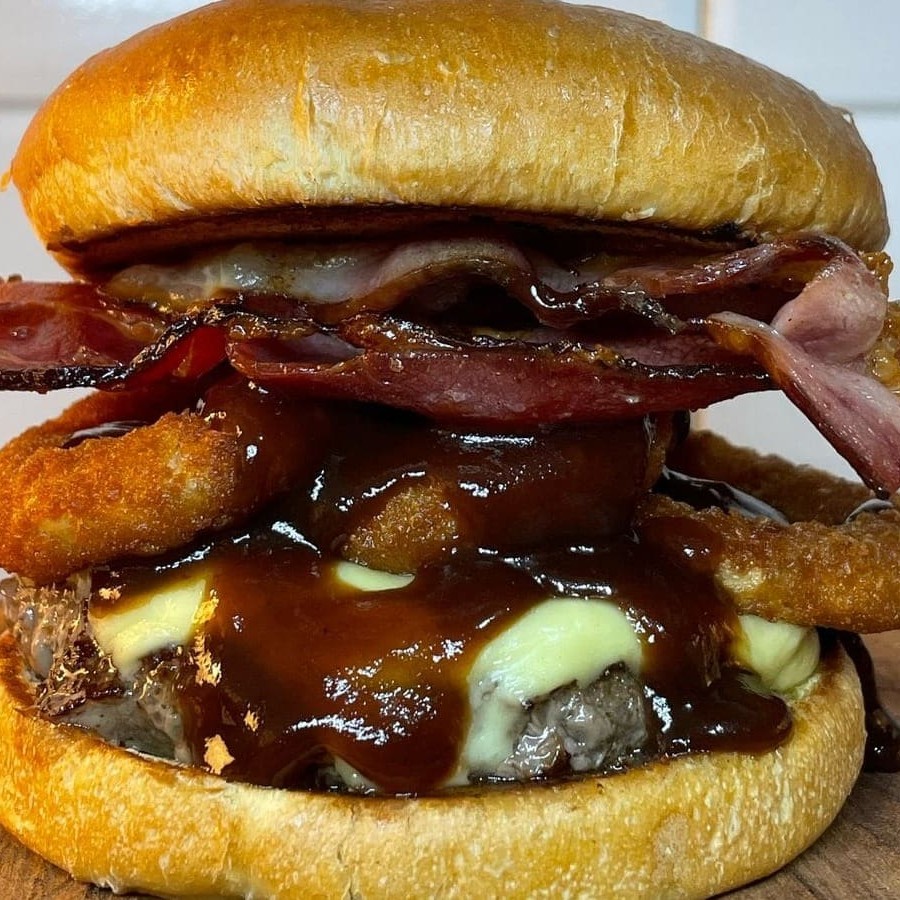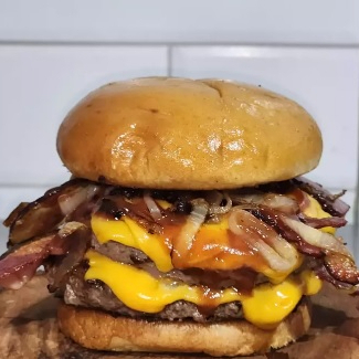 Se você achava que já tinha visto um hambúrguer grande, é porque ainda não conheceu o BITELO! Esse monstro foi feito para os verdadeiros apaixonados por carne e tamanho não é problema aqui – são 360g de pura suculência com duas carnes de 180g de blend Angus, grelhadas no ponto perfeito. Pra deixar tudo ainda mais irresistível, tem uma generosa camada de queijo cheddar derretido, fatias crocantes de bacon e aquele toque especial de cebola dourada que explode em sabor a cada mordida.