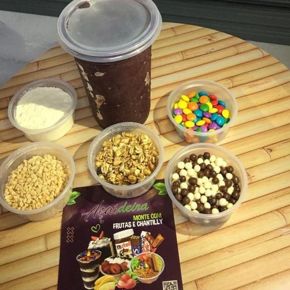 Açaí na tigela de isopor ideal para um Dia quente! #Escolha seu Açaí: ( 7 opções): Açaí Natural, açaí batido com banana, açaí batido com morango, açaí batido com maracujá, açaí batido com limão ou açaí batido com manga. Também temos açaí com chocolate trufado e creme de Ninho além do nosso famoso creme de cupuaçú #Escolha cobertura ou leite condensado ( + de 10 opções) #Escolha até 4 toppings que vão no meio e em cima do copo (+ de 15 opções): Leite Ninho, ovo maltine, choco ball, granulado, Confete de chocolate, aveia, sucrilhos, coco ralado, cereal ball chocolate, flocos de arroz, amendoim, granola, paçoca, jujub Em breve a Açaideira também terá para venda, hambuguer, xtudo, hamburguer com cheedar, hamburguer de picanha, hamburguer artesanal, smash burguer, cachorro quente, cachorro quente gourmet, batata frita, batat --------------------------------------------tags------------------- Açaí, Açaideira, entrega rápida, taxa grátis, cupom, desconto, off, promoção, oferta, off, 0800