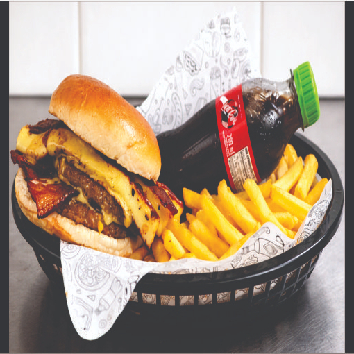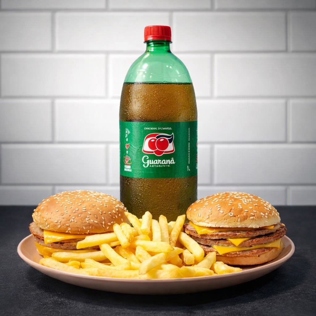 São 2 Mayas (Triplo Cheddar) + 1 Guaraná Antartica de 1 litro + 1 Batata que serve 2 pessoas (+- 400g) - O combo de hambúrguer para o seu date.