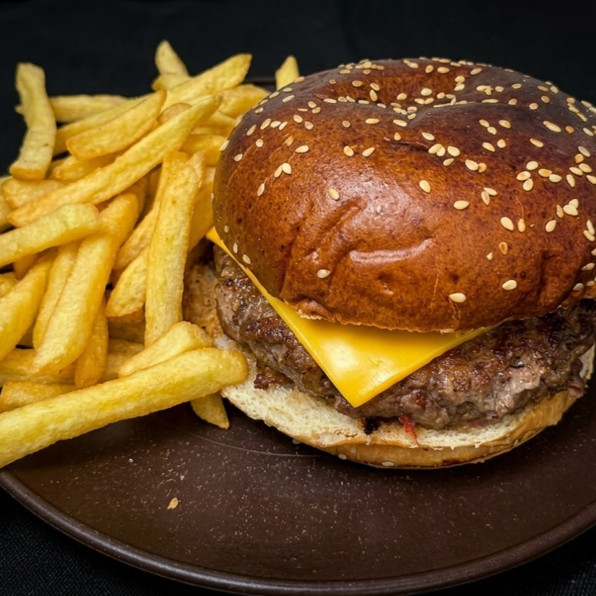 PÃO PRIME BUN + BLEND 170G + QUEIJO CHEDDAR + BATATA FRITA