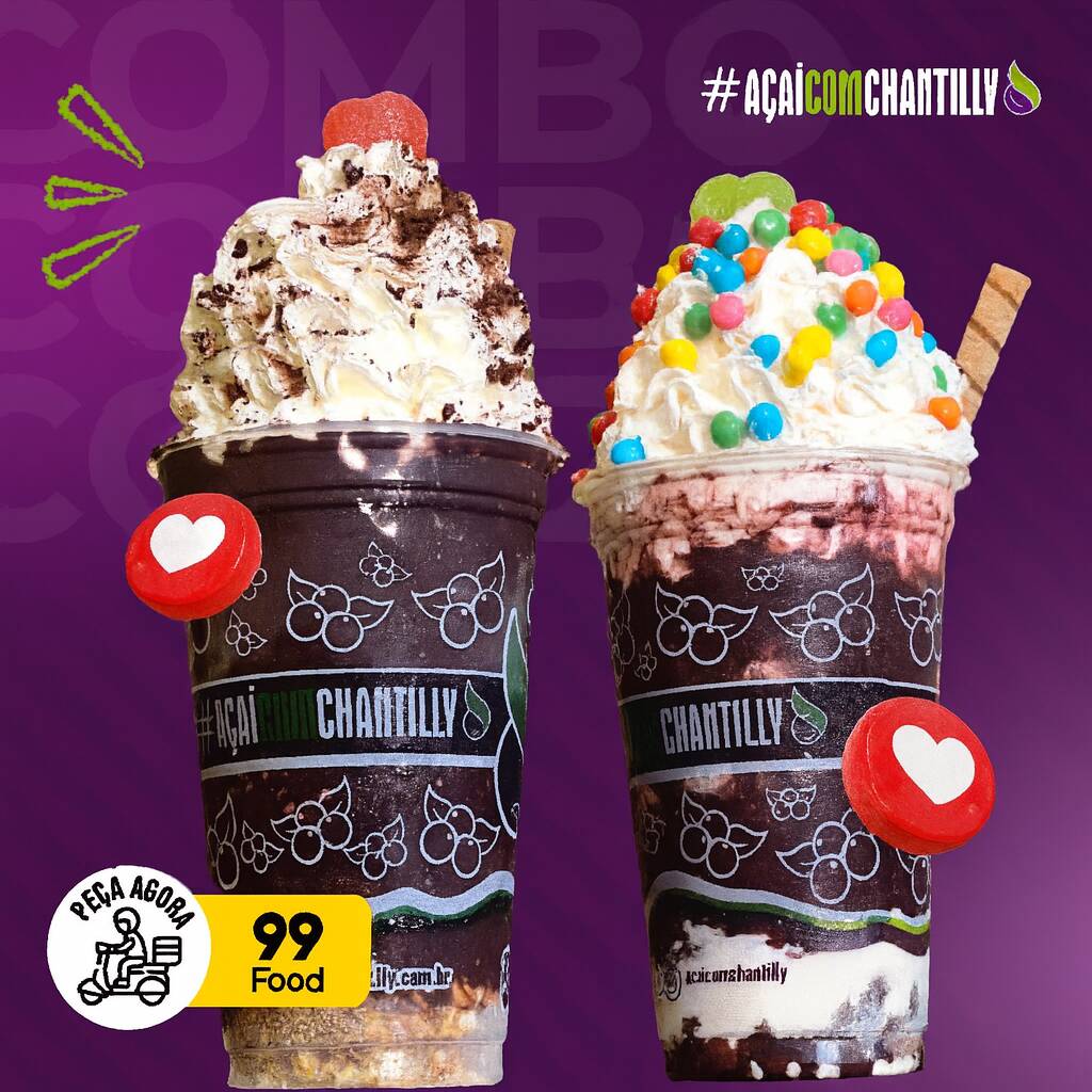 Açai com chantilly toppings