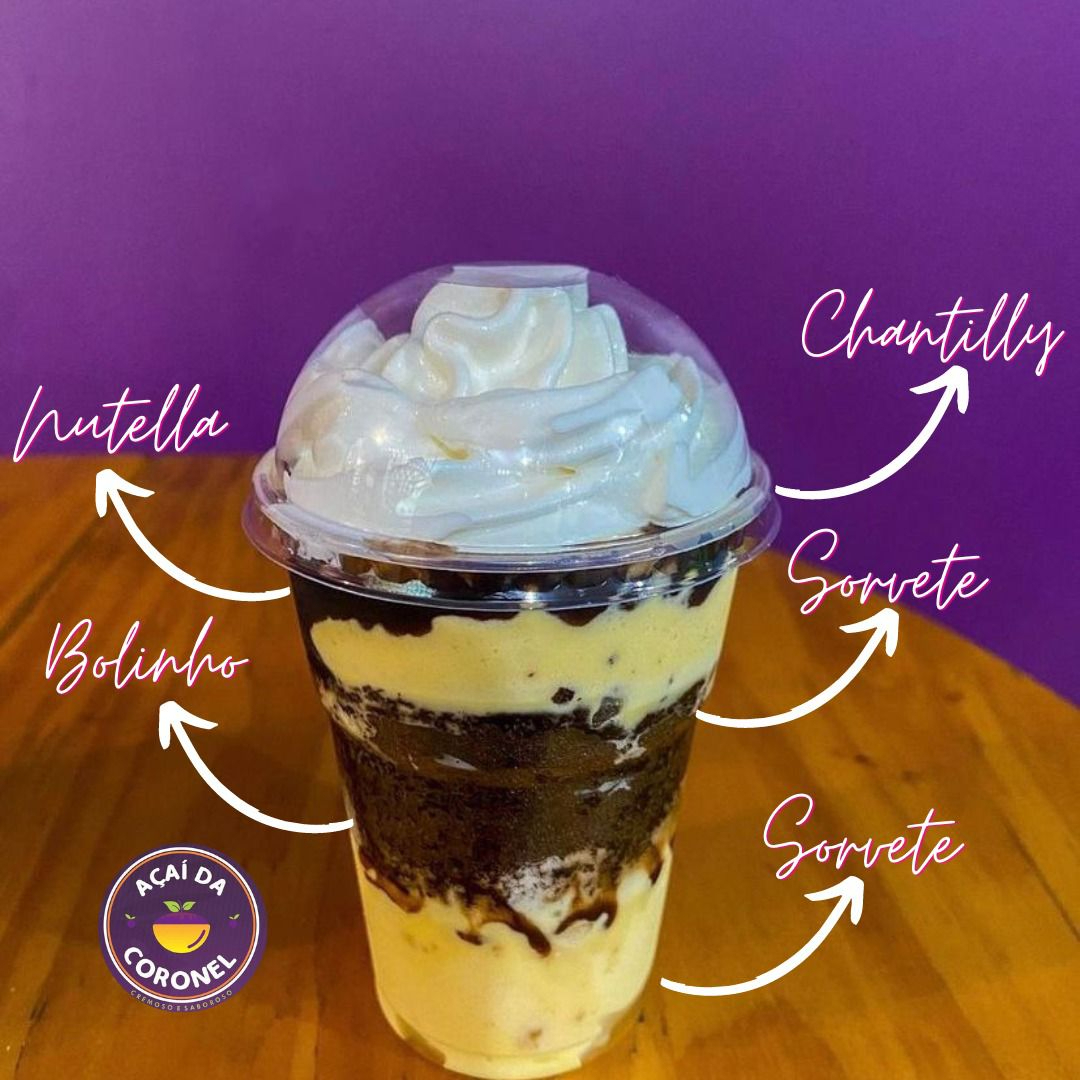 Delicioso bolinho recheado, sorvete, nutella e chantilly
