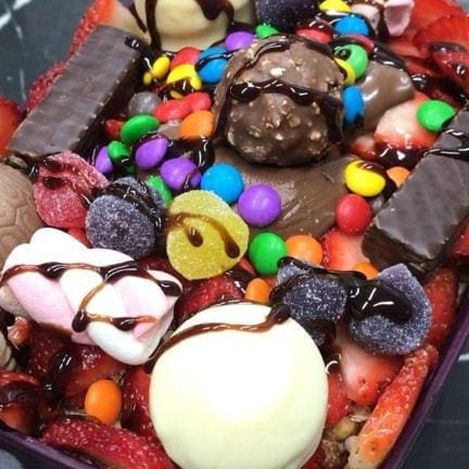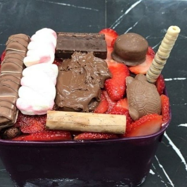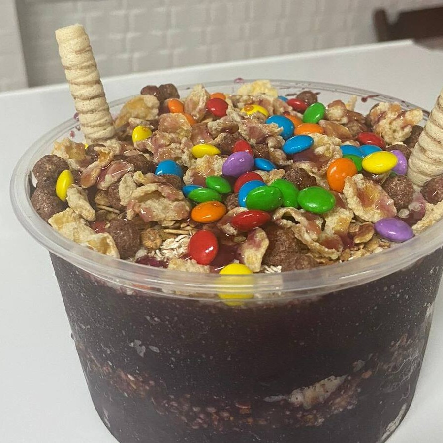 Açaí Gourmet 2 litros 1 cobertura + complementos+1 fruta +Tortuguita+Bis+disquete+ Nutella+marshmallow +2bombom + ferreiro Rocher ou Kinder Bueno
