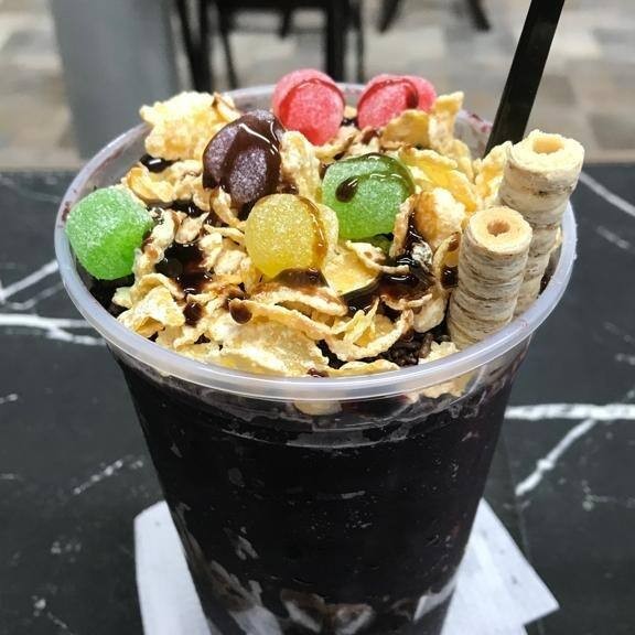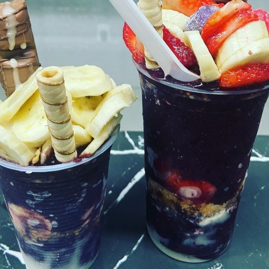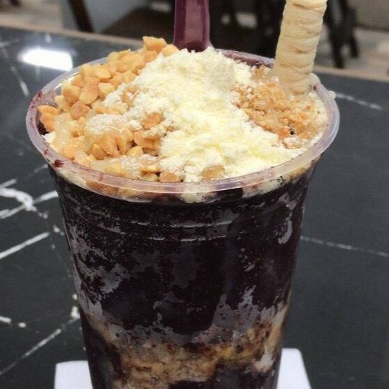 Delicioso açaí com leite condensado batido, cremosinho para tomar com canudo.