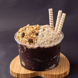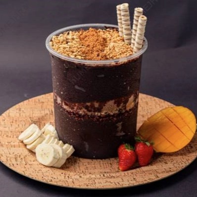 Delicioso açaí artesanal batido com a fruta de sua preferência! Monte seu açaí.
