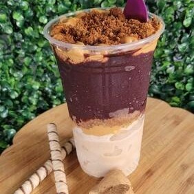 Deliciosa combinação do nosso sorvete de paçoca artesanal, recheado com creme de amendoim e nossa paçoca secreta da casa...e para finalizar nosso famoso açaí artesanal batido com banana! Ideal para lanche, janta ou sobremesa! 500m de pura delícia...:)