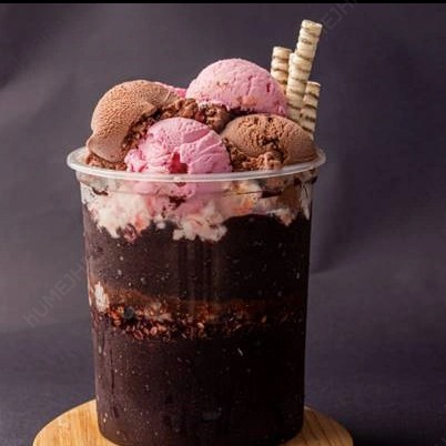Delicioso sorvete de chocolate com avelã com mesclas de chocolate e amendoim.