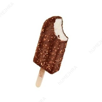 Delicioso picolé com casquinha de chocolate.