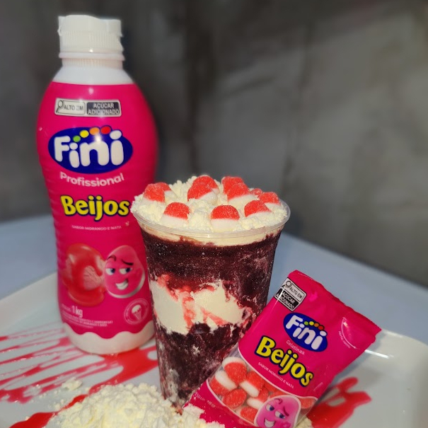 Açaí de 500ml + Leite em pó + Calda Fini beijos + Gomas Fini Beijos