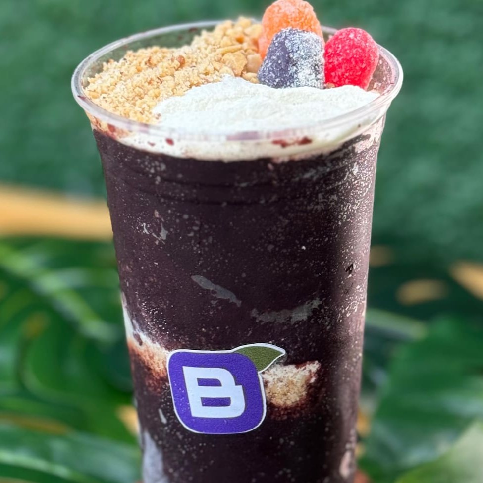 Nosso Delicioso Açaí Artesanal,Batido Com Banana E Morango,Um Pouco Mais Cremoso E Ainda Mais Refrescante Na Garrafa.