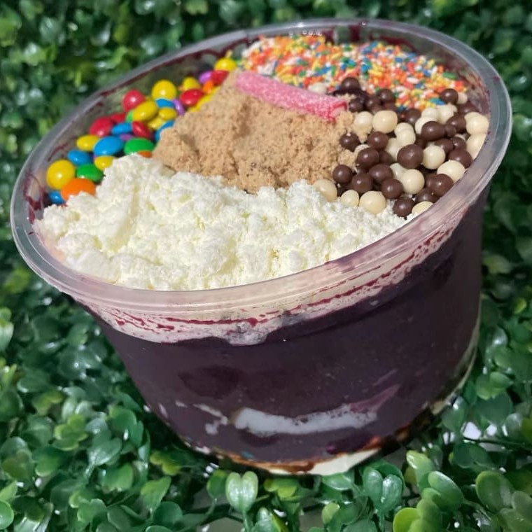 Açai de qualidade montado do seu jeito! Voce pode adicionar 1 calda, 3 completentos de sua prefrencia grátis e ganha um canudinho.