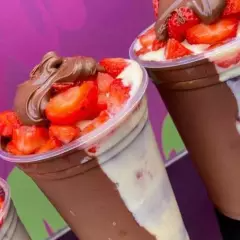 Copo de 500 ml do nosso açaí bem cremoso, montado em camadas: 🥛 Creme de Leitinho (2x) 🍫 Nutella (2x) 🍓 Morango (2x) Uma explosão de sabor em cada colherada 💜✨