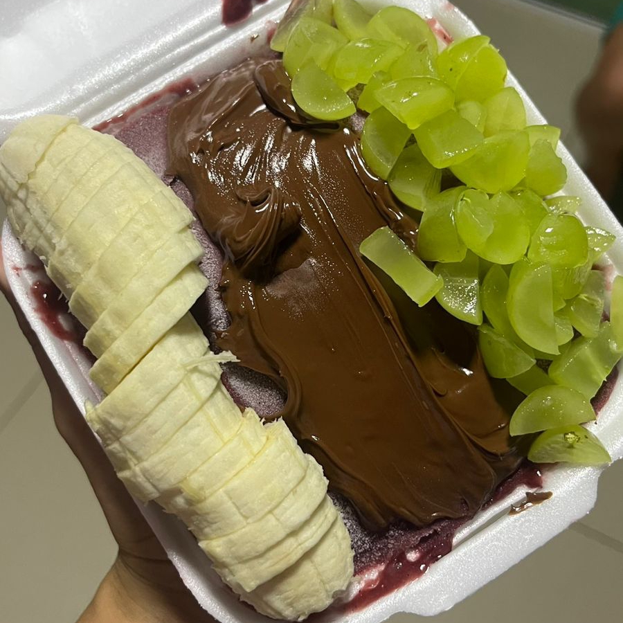 👉 Os complementos são adicionados somente por cima do açaí.