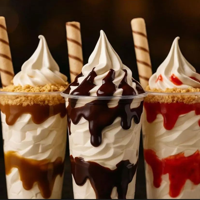 Top Sundae no copo de 300ml, com delicioso Sorvete de Baunilha com Calda e Cereal a sua escolha.