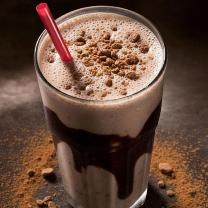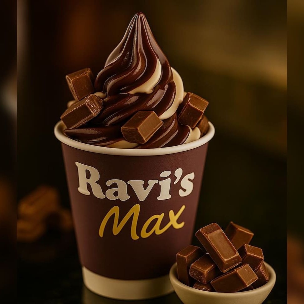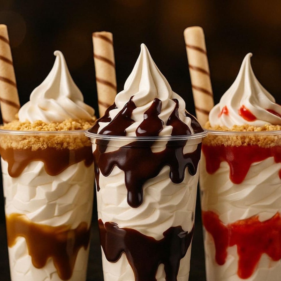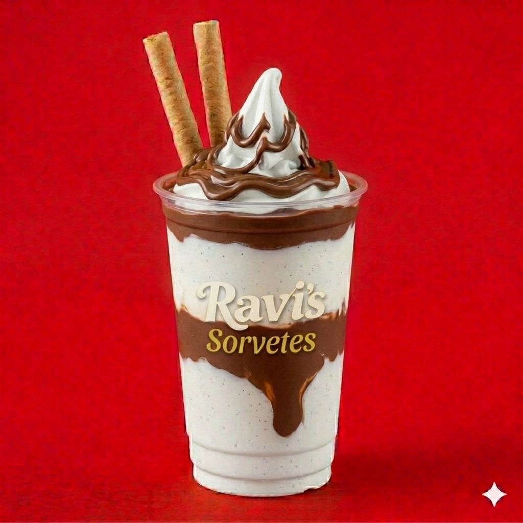 Sorvete de baunilha com uma calda deliciosa e recheio de Ovomaltine que dar água na boca.