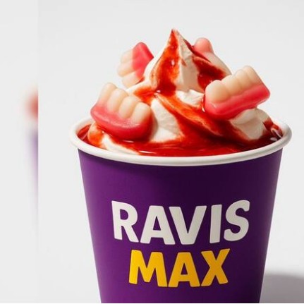 Nosso delicioso sorvete de baunilha com calda de dentadura e gomas Fini Dentadura por cima uma delícia.