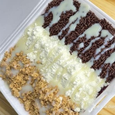 Amendoin, paçoca, creme de Amendoin, com paçoca encima.