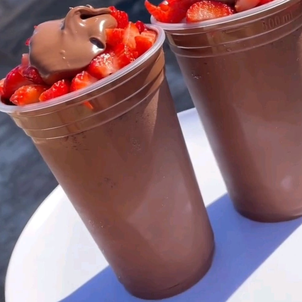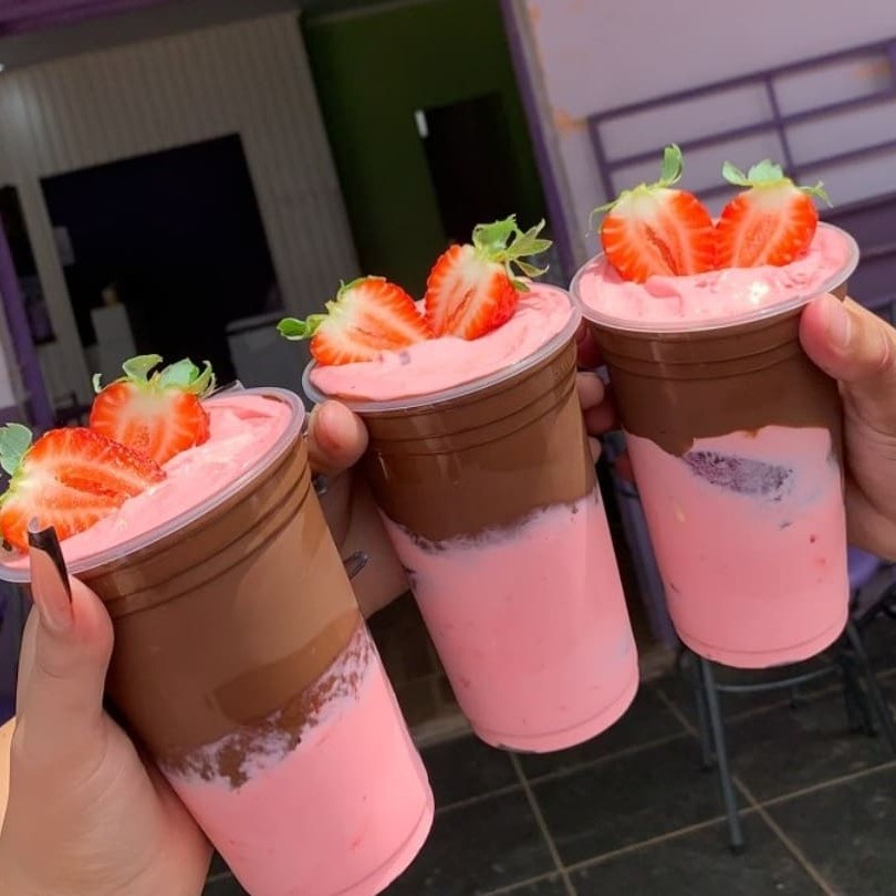 Creme De Morango Com Creme De Avela No Copo 1 Kl Com 2 Morango Encima.