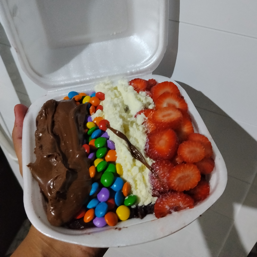 Marmitex 1 Litro. Morango, Leite Condensado, Nutella, Leite Em Pó