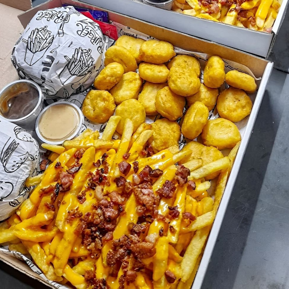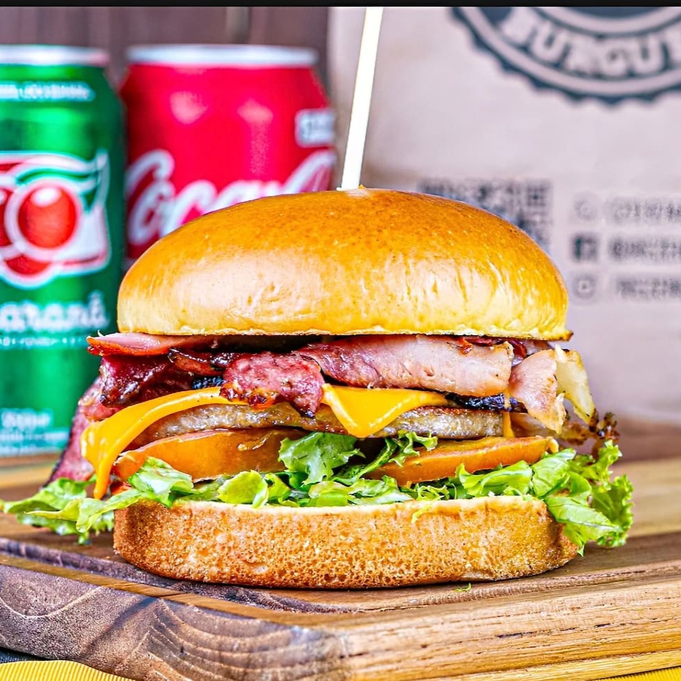 6 Burgão com batata e cheddar em dobro e bacon pra completar imagem meramente ilustrativa