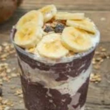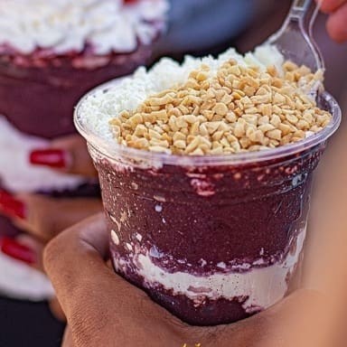 Açai + banana + amendoim+ leite + granola + condensado +Creme de Ninho cremoso . *Obs (os adicionais gratis são adicionados no topo do copo)
