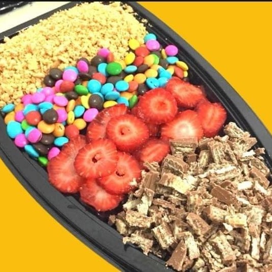 Oferemos diversos opções de doces e cobertura dentro do pote. *Obs (os adicionais gratis são adicionados no topo do copo)