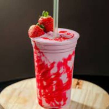 O milk shake de morango com calda de morango ou chocolate bebida cremosa e refrescante feita com sorvete de morango e leite. É uma opção deliciosa de sobremesa ou lanche nos dias quentes de verão.