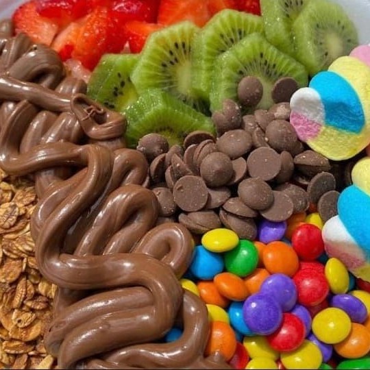 Acompanha 10 completamentos a sua escolha mais uma piscininha de Nutella no meio com 800ml de acai.