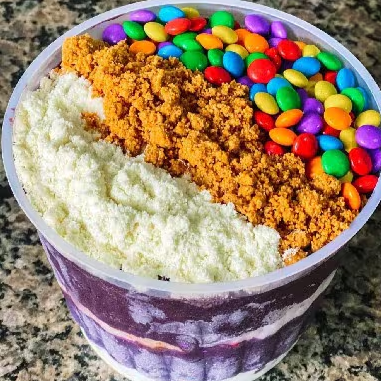 Açaí cremoso 1 litro, bem gelado e super reforçado.Você escolhe 4 acompanhamentos para montar do seu jeito e deixar perfeito: