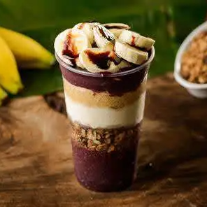 🥤 Açaí de Banana com Ninho Premium 🥤 Açaí geladíssimo batido com banana fresca, leite condensado e muito Leite Ninho, resultando em uma cremosidade absurda. Perfeito pra quem ama sabor e textura impecável! 💜✨