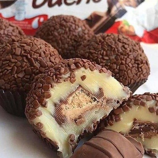 Deliciosa massa de Ninho enrolado com 3 barrinhas de Kinder Bueno passado no confeito da Granulê