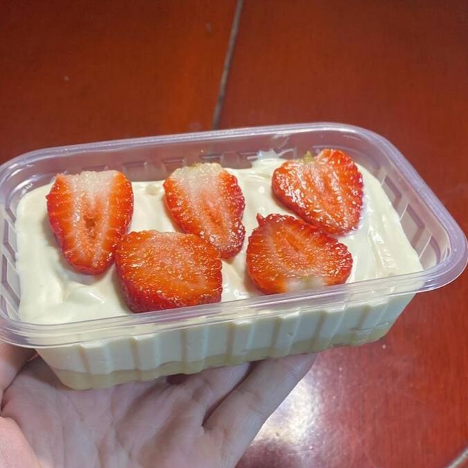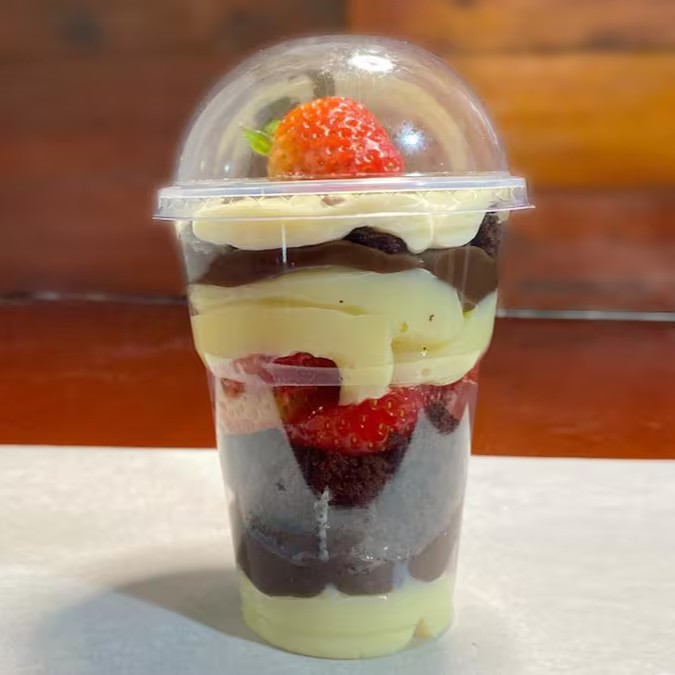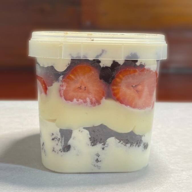 Dois deliciosos recheio de Ninho, biscoito maisena e morangos selecionados