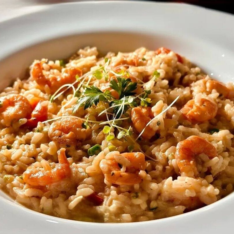 Risoto de arroz arbóreo com molho à base de camarões e ervas. #Insalata #Saladacaesar #Arancini #Pappardelle #Spaghetti #Fettuccine #Risoto #Ravioli #Gnocchi #Carbonara #Massa #Comida Italiana Massa italiana Comida italiana #Massas #italia #nhoque