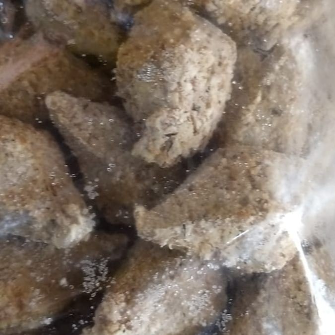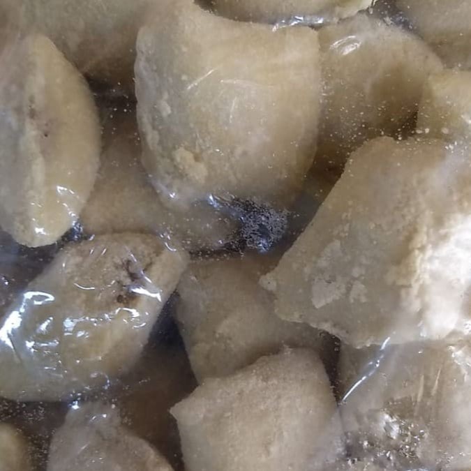 Salgadinho congelado recheado com queijo mussarela e alho.