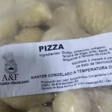 Salgadinho congelado recheado com queijo mussarela, presunto e orégano.