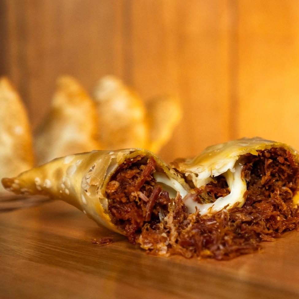 Nosso Pastel de Carne-Seca é uma iguaria irresistível. A carne seca, cuidadosamente selecionada, é desfiada a mão para garantir um sabor único e intenso. Além disso, a carne é envolvida por um Catupiry de primeira linha, que derrete na boca e adiciona uma camada extra de sabor. Este pastel é um verdadeiro deleite para os amantes de salgados, sendo uma ótima opção para quem aprecia a combinação da