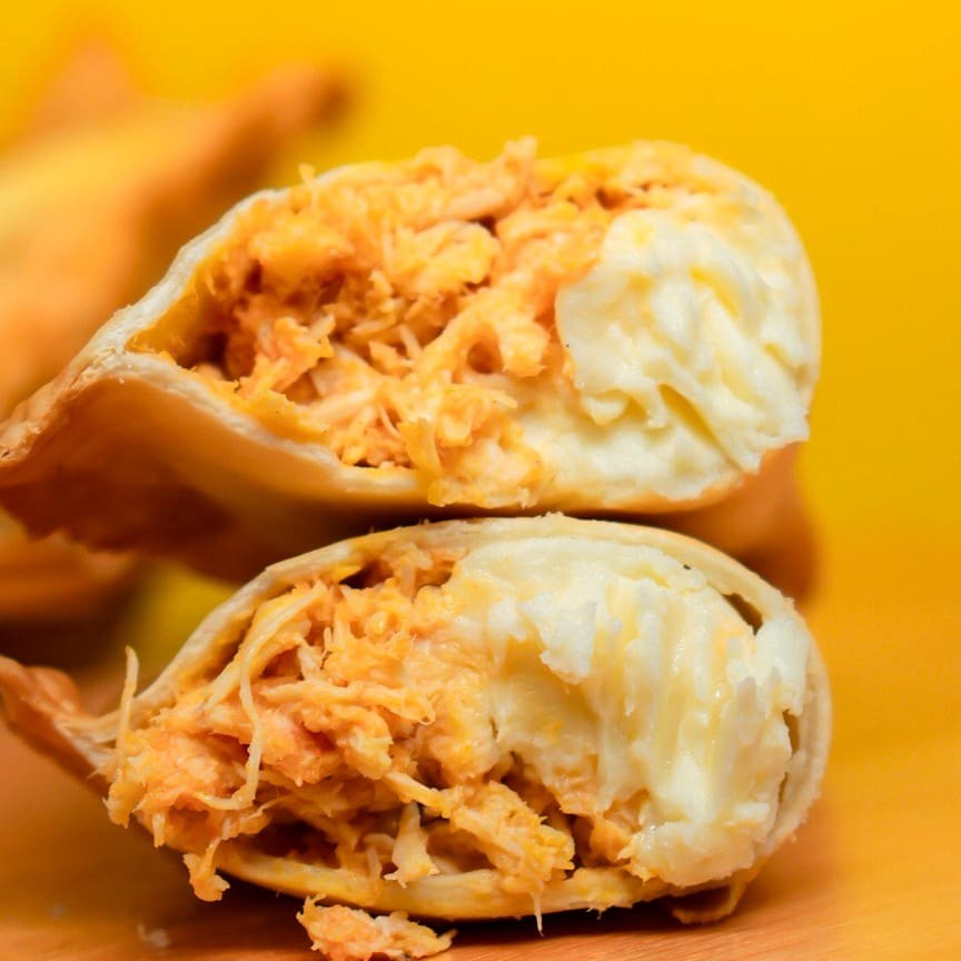 Delicioso recheio de frango com queijo muçarela de qualidade!