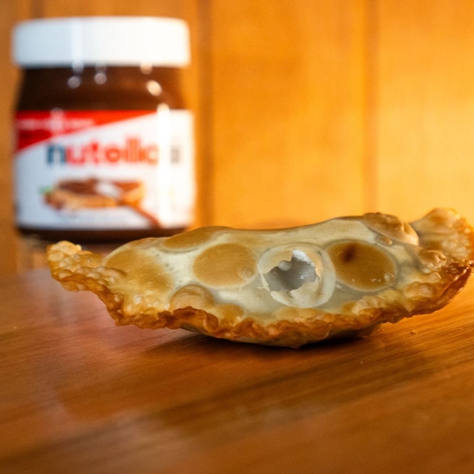 Apresentamos o nosso irresistível 'Pastel de Nutella'. Uma verdadeira indulgência para os amantes de doces, recheado com a autêntica e mundialmente famosa Nutella. Apreciadores de um bom pastel encontrarão nesta delícia uma combinação perfeita da crocância da massa dourada com o recheio cremoso e aveludado da Nutella. Uma experiência culinária que promete deliciar o seu paladar e criar momentos me