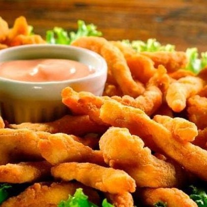 Que tal se deliciar com nossas irresistíveis iscas de frango empanadas? Feitas com o filé do peito de frango, cada mordida é uma explosão de sabor e textura! Esta porção generosa, que serve em média 2 a 3 pessoas, é perfeita para compartilhar com quem você ama. E para tornar a experiência ainda mais especial, acompanha nosso delicioso molho rosé, proporcionando um toque de frescor e sabor extra. P