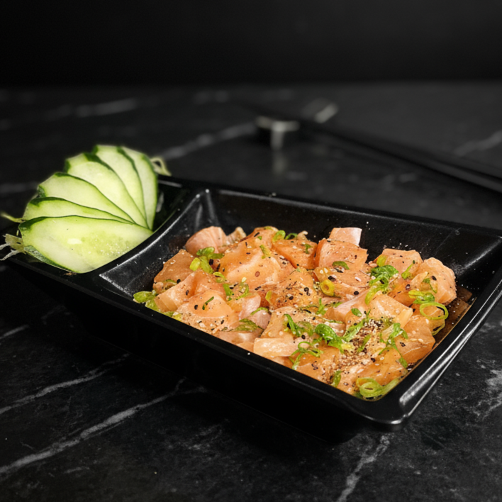 Cubos de salmão finalizados com cebolinho e gergelim - 120gr