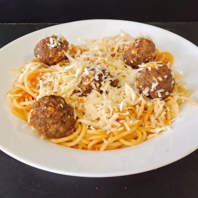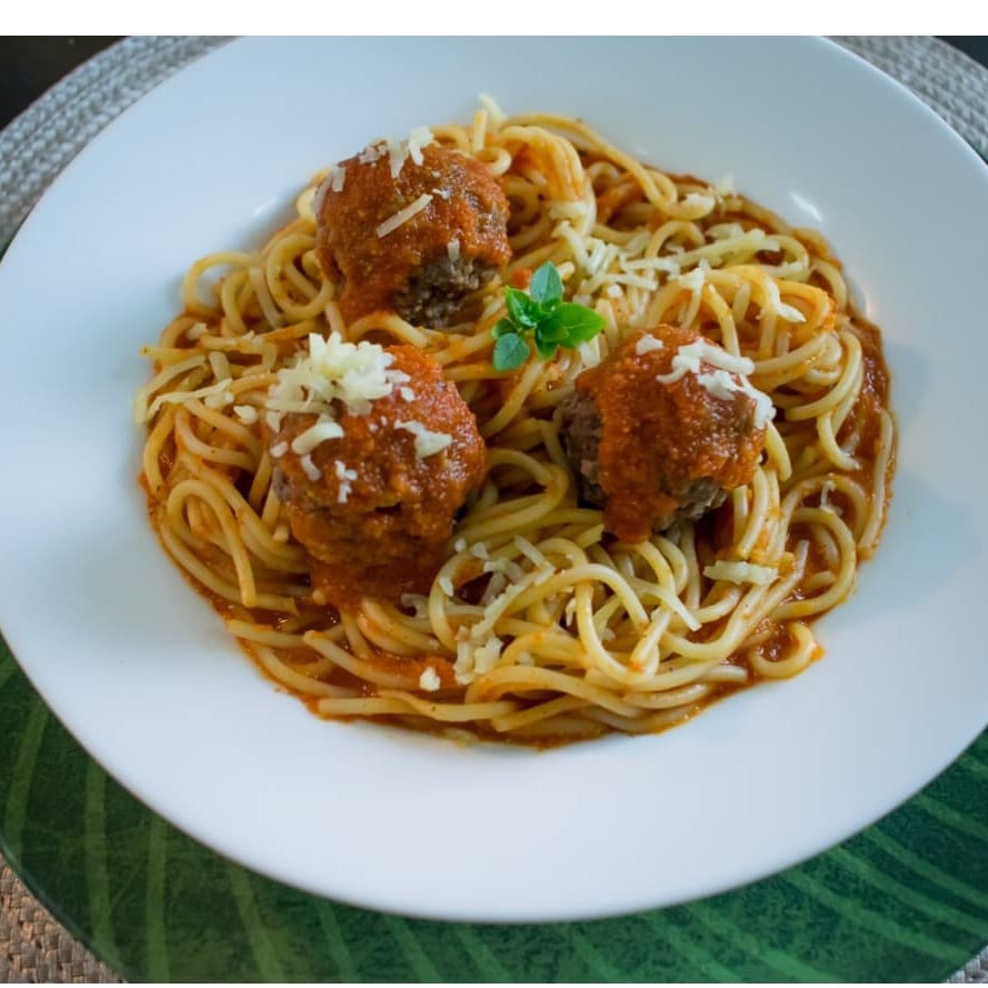200g de Espaguete, Molho Sugo e 5 Almôndegas Suculentas.